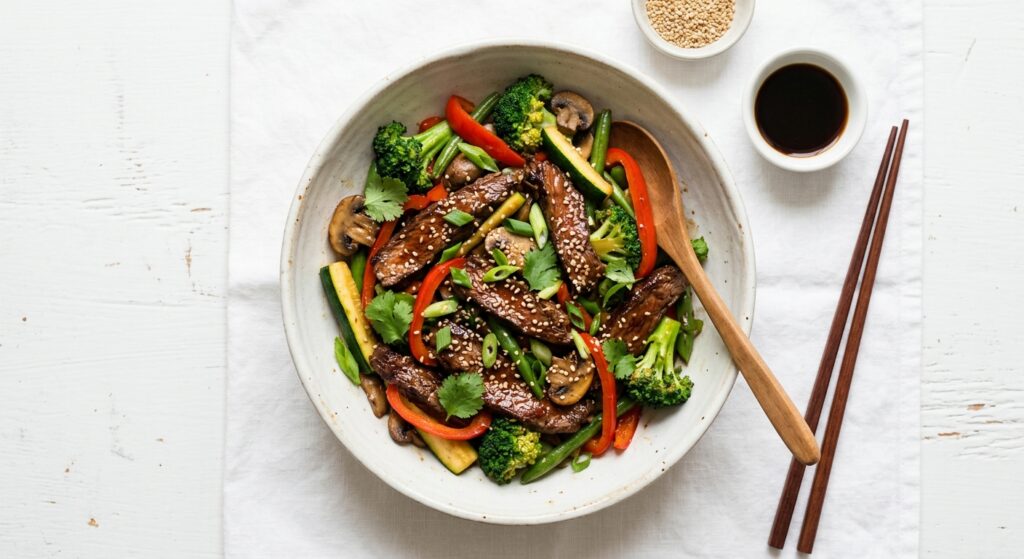 A quick and satisfying beef stir fry loaded with low-carb vegetables. Ready in 20 minutes!